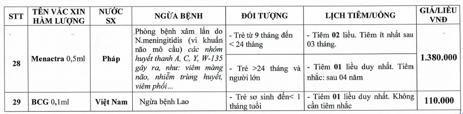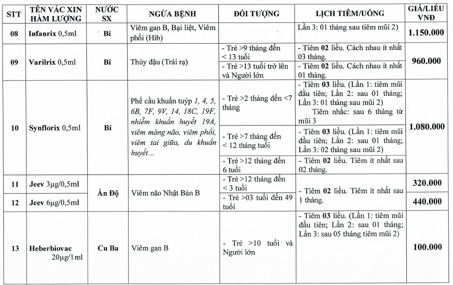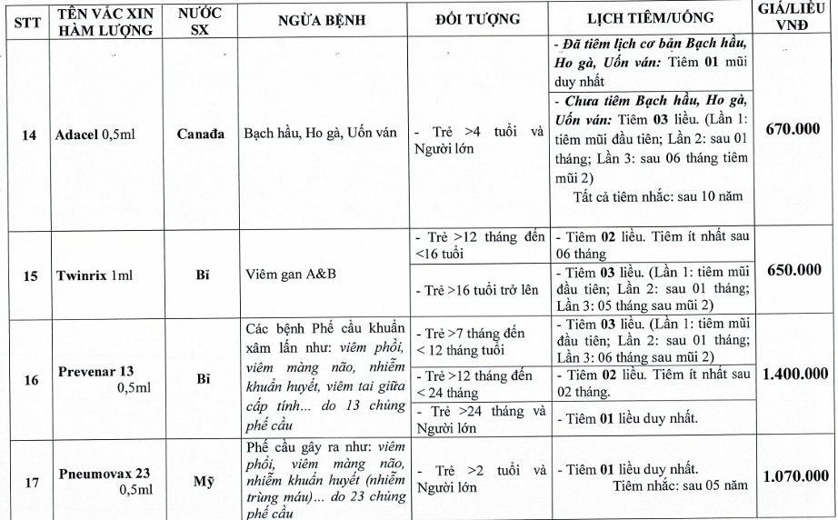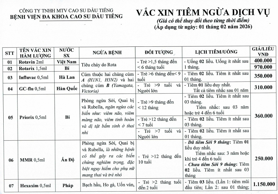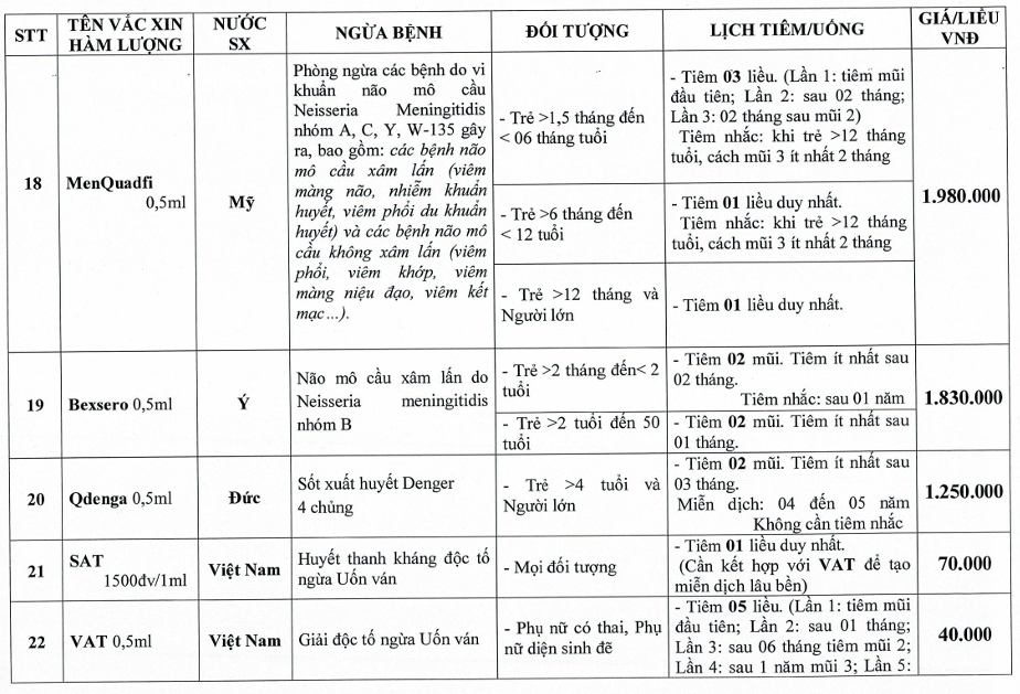 Thời gian tiêm chủng: Từ thứ Hai đến sáng thứ Bảy hàng tuần